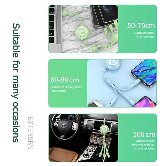 Cable Retráctil 3 en 1 USB, Tipo C y iPhone