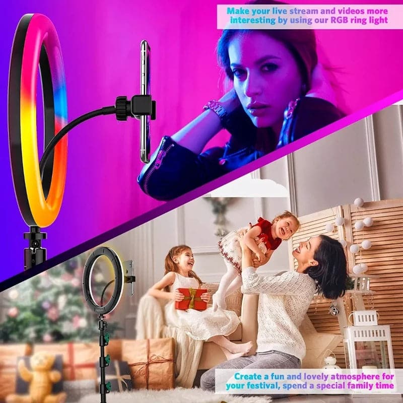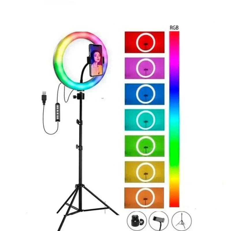 Si buscas resaltar tus características, mejorar tus retratos o dar vida a tu contenido en redes sociales, este aro de luz RGB es el compañero perfecto para iluminar tus momentos y proyectos. ¡Brilla con luz propia y marca la diferencia!