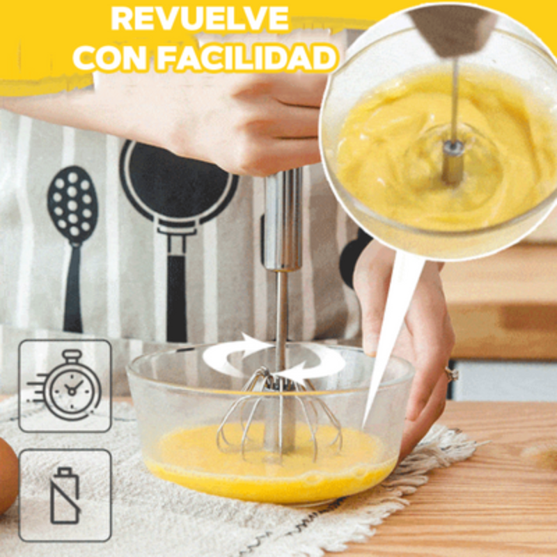 Nuestro te hara su trabajo más fácil a la hora de batir algun alimento, No necesita electricidad ni batería. Simplemente presione hacia abajo el mango y las cuchillas de acero inoxidable del batidor giran y batiran lo que quieras en cuestion de segundos.