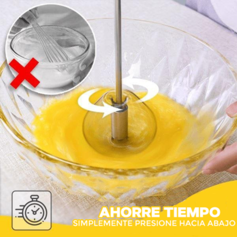 Ahorra esfuerzo mientras hace el trabajo mucho más rápido que el batidor convencional. No necesita electricidad ni batería solo tiene que presionar hacia abajo y batira todo lo que usted quiera en cuestion de segundos.