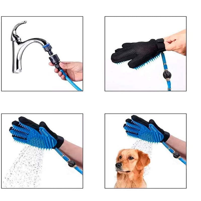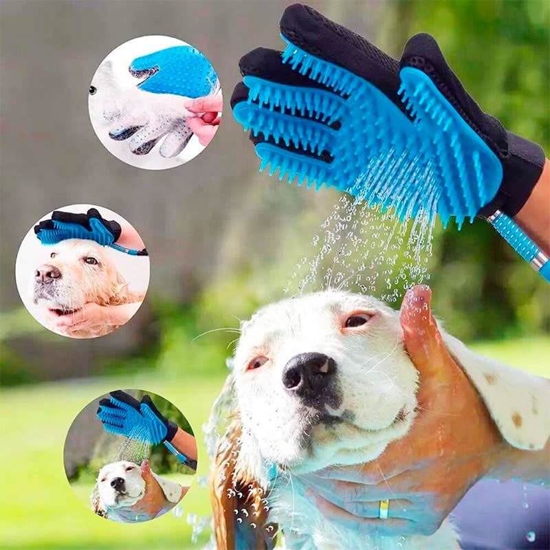 Con este guante cepillo de silicona suave el baño de tu mascota será más fácil y entretenido para los dos. Su manguera se conecta a un grifo así el agua fluirá mientras tu mascota recibe un relajante masaje. Simplemente usas champú o jabón para mascotas. El cepillo es fácil de agarrar ya que es un guante que se ajusta perfecto a la mano. Le darás un buen masaje a tu perro mientras fluye el agua a través del cepillo para eliminar la suciedad y el pelaje suelto. Esto lo puedes hacer mientras tu otra mano sostiene a tu mascota.