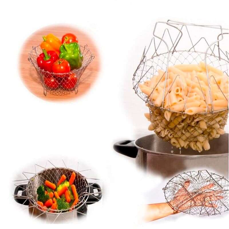 Perfecta para hervir, freír y mas : Nuestro producto innovador hace que cocinar sea muy fácil, agradable y ahorra tiempo de forma efectiva. cocina de manera profesional con esta super CESTA CHEF que se transforma para múltiples uso.