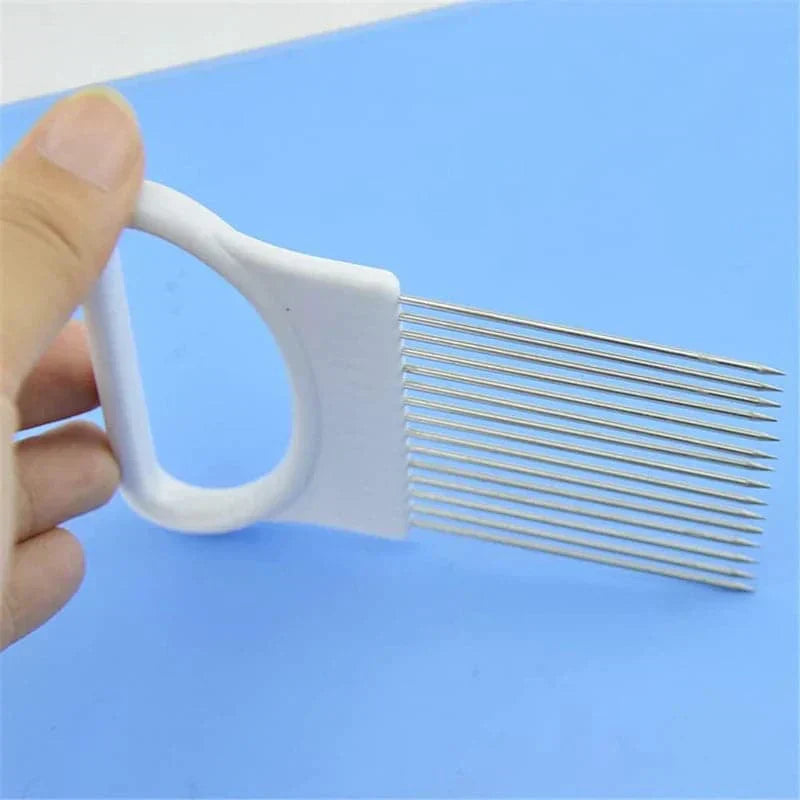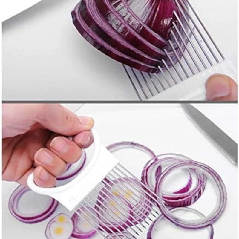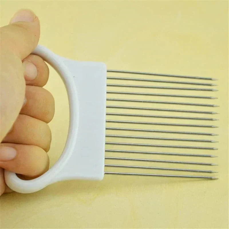 Haz que la preparación de tus comidas sea más eficiente y sin complicaciones con nuestro cortador de cebolla de acero inoxidable. Diseñado para cortar cebollas sin esfuerzo y sin lágrimas, este utensilio es esencial en tu cocina. La hoja de acero inoxidable afilada garantiza cortes precisos, mientras que su diseño ergonómico facilita su uso. Olvídate de las molestias y disfruta de la cocina con este práctico cortador.