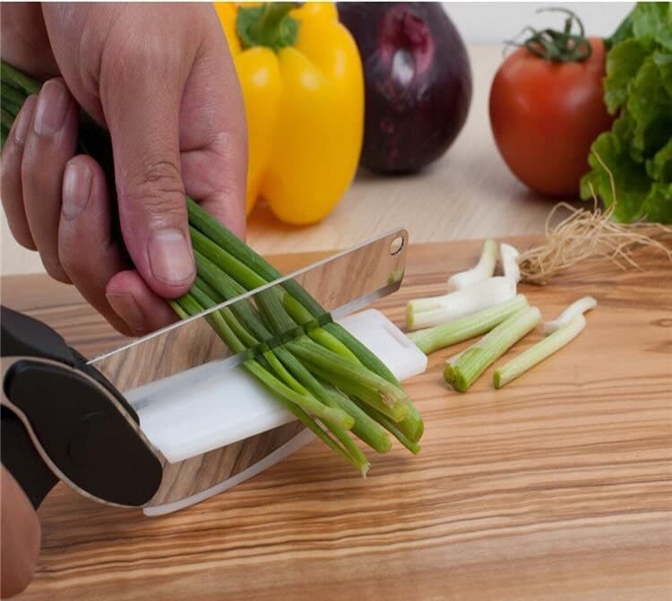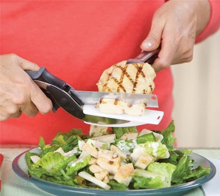 TEN TODO LO QUE NECESITAS EN TU COCINA CON UN SOLO UTENSILIO, TIJERA CUCHILLO Y TABLA