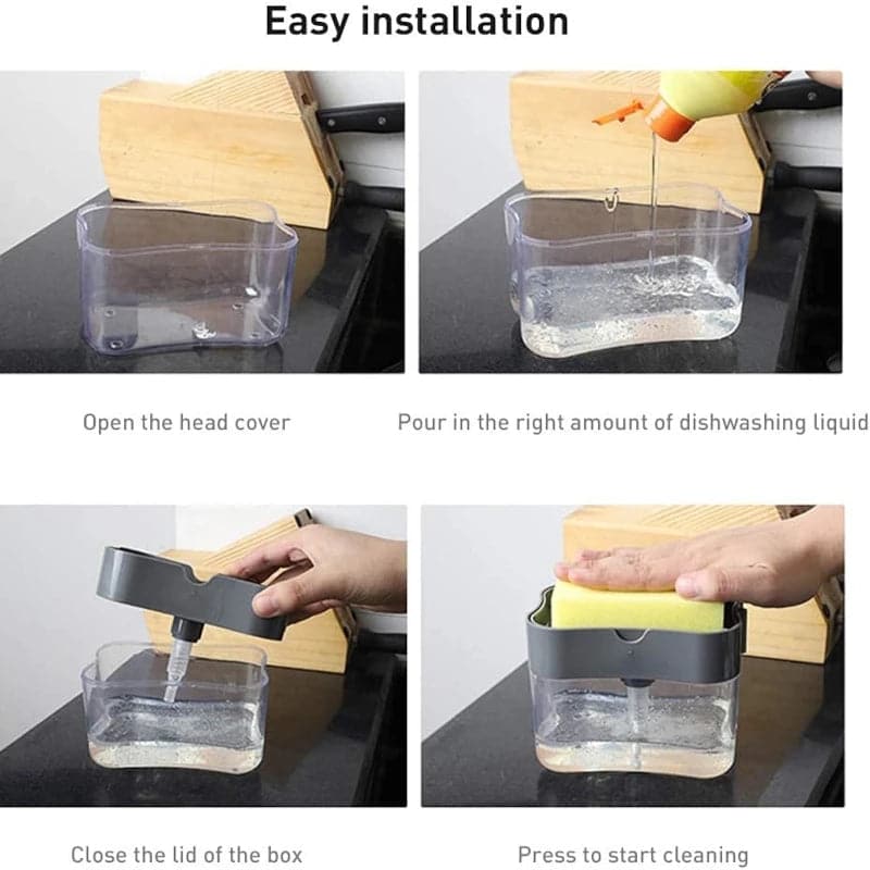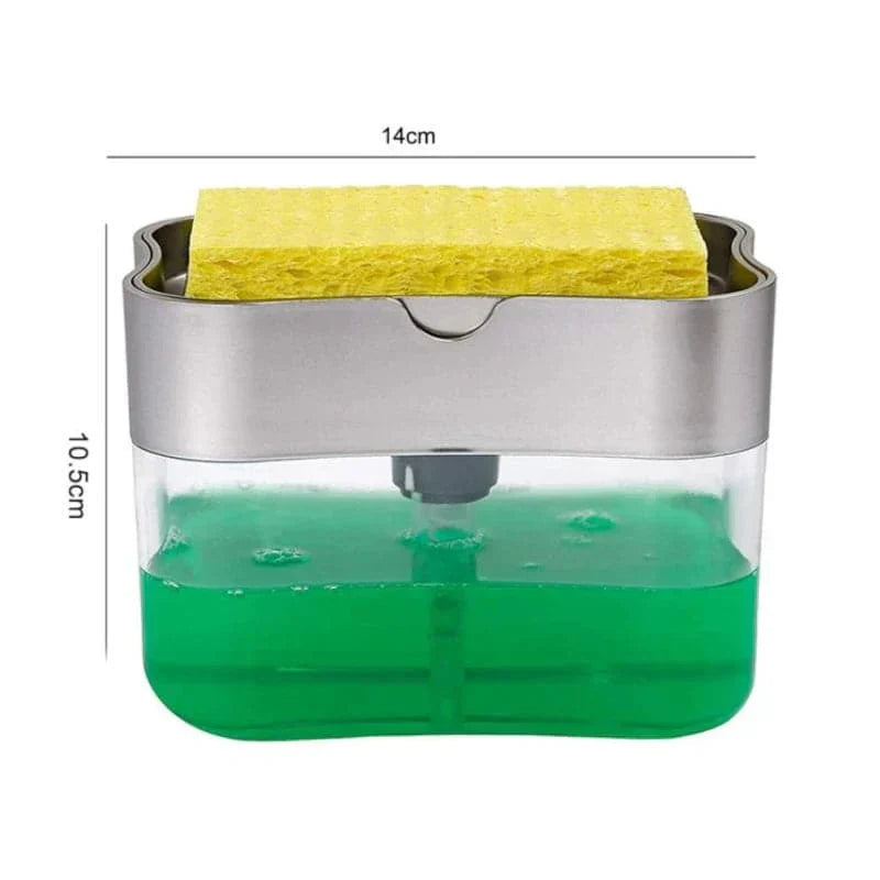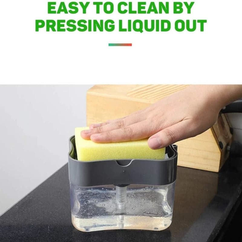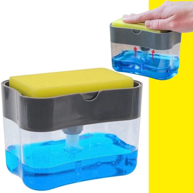 - Presione suavemente hacia abajo en la placa superior para dispensar jabón directamente sobre la esponja.