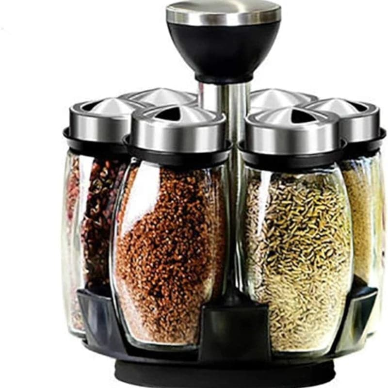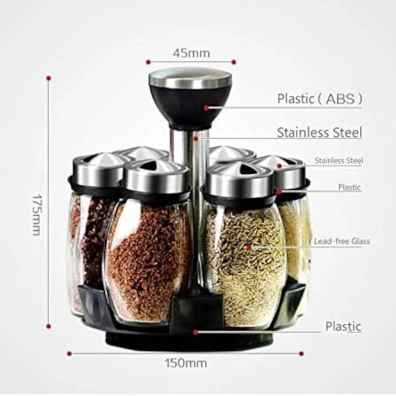 Nuestro juego de 6 frascos giratorios para condimentos es versátil y práctico. Cada frasco es perfecto para una amplia gama de especias, desde pimienta negra hasta canela y todo lo demás. Además, el soporte giratorio de fácil acceso facilita la elección de tus condimentos mientras cocinas.