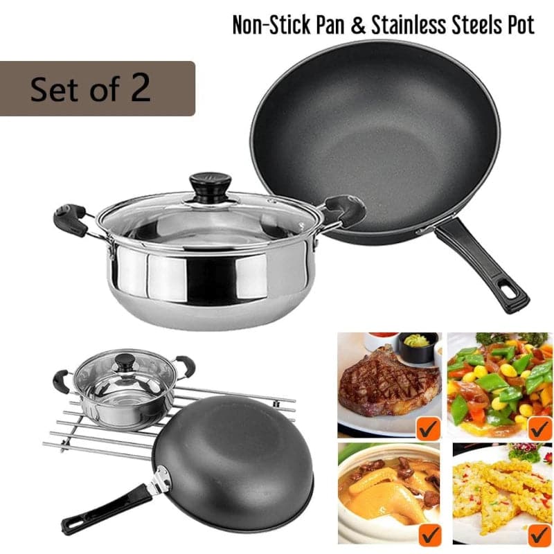 La olla y la sartén están fabricadas con materiales de alta calidad que garantizan una distribución uniforme del calor, lo que te permitirá cocinar tus comidas de manera eficiente y sin preocupaciones. Ya sea que estés friendo, hirviendo, salteando o cocinando a fuego lento, este combo tiene todo lo que necesitas para lograr resultados excepcionales.