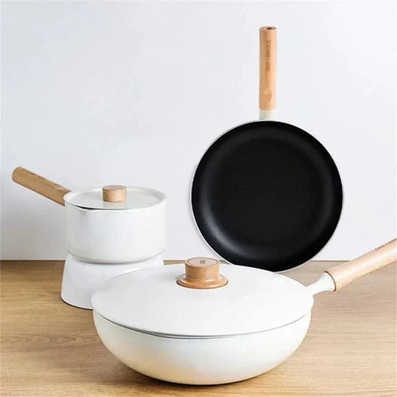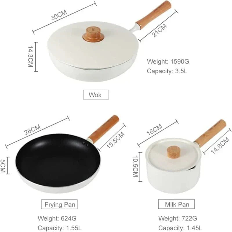 Elegancia en tu cocina: Juego de ollas 3 piezas de aluminio con mango de madera
