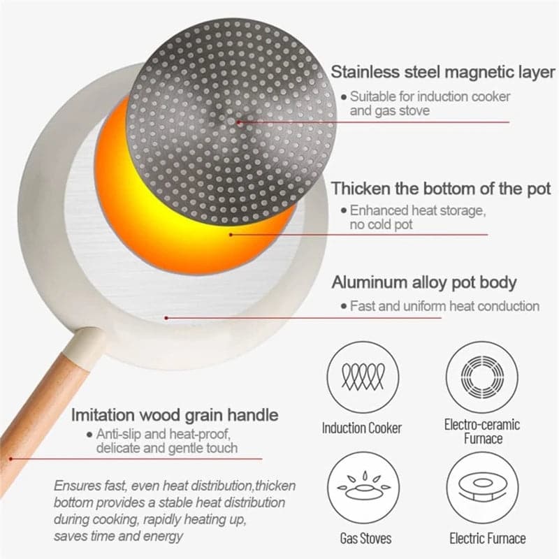 - Mango de grano de madera, aislamiento térmico antideslizante, toque delicado y suave.
