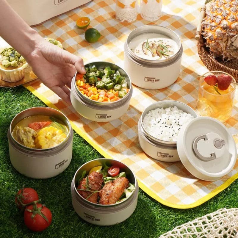 - Aislamiento de temperatura superior: el aislamiento al vacío y la bolsa aislada brindan hasta 3-4 horas de retención de calor; casi el doble de largo que otros. NO más almuerzo frío. NO más microondas. El aislamiento al vacío proporciona la temperatura adecuada para mantener los alimentos calientes y saludables. Conveniente para disfrutar de sabrosa comida casera en la escuela o en el trabajo.