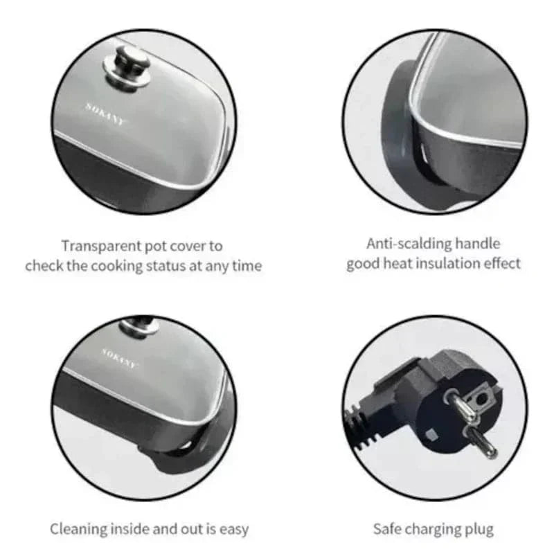 Esta versatilidad te brinda infinitas posibilidades culinarias, desde preparar sopas reconfortantes hasta asar carnes jugosas, descubre la conveniencia y el sabor con la olla eléctrica y freidora Sokany. ¡Tu próxima creación culinaria está a solo unos ajustes de distancia!
