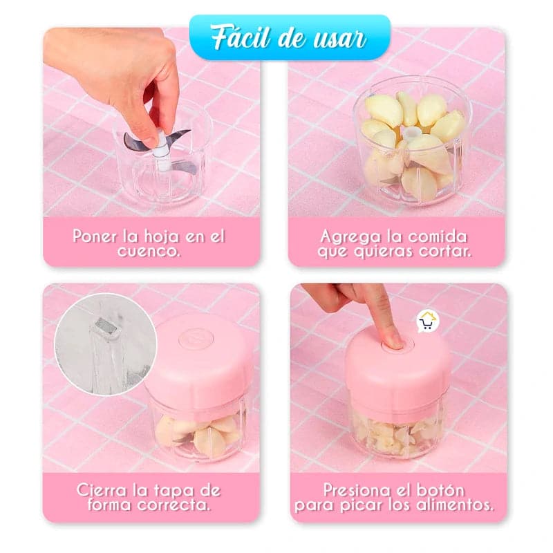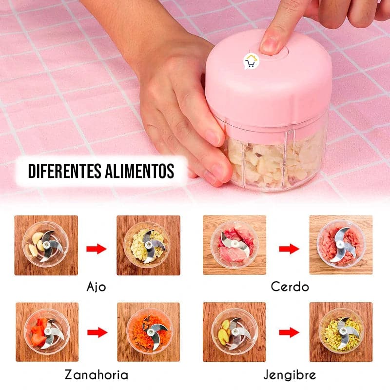 Nuestro picatodo recargable es el compañero perfecto para tus tareas de picado en la cocina. Con su potente motor y cuchillas afiladas de acero inoxidable, este dispositivo te permite picar verduras, hierbas, frutos secos y más en cuestión de segundos. Ya no perderás tiempo y energía en el picado manual.