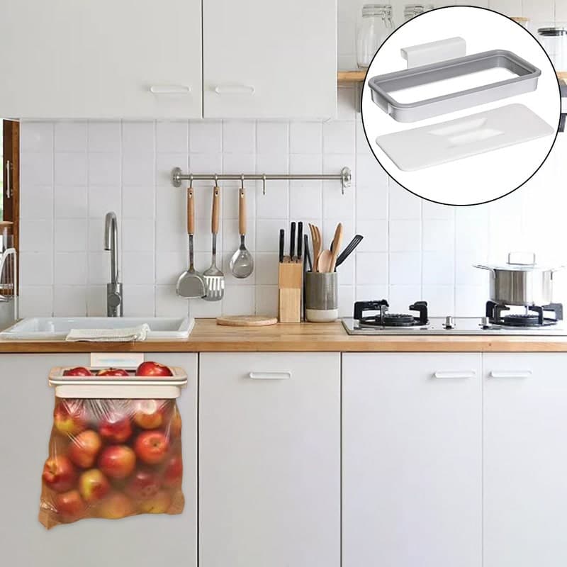 Ahorro de espacio con el diseño colgante. Cuando no lo use, puede guardarlo para mantener su hogar limpio y ordenado. Fácil de instalar, sin necesidad de taladrar. Se adapta a cualquier tipo de bolsas, bolsas de supermercado, bolsas de basura recicladas y bolsas de plástico.