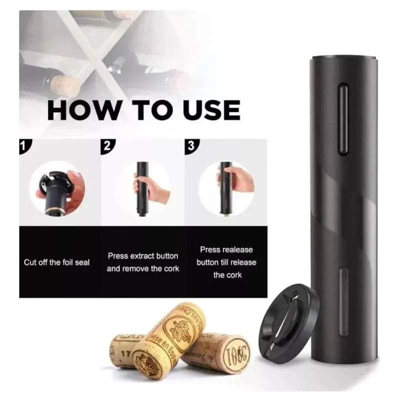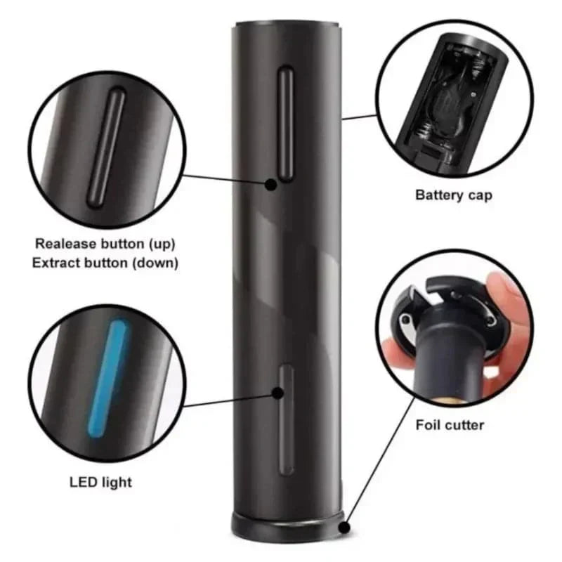 - Este abridor eléctrico de vino cuenta con un agarre ergonómico para facilitar la manipulación diseñado para adaptarse a todas las botellas de vino tradicionales.