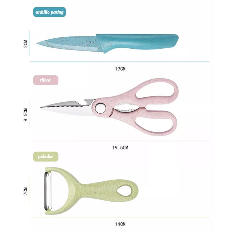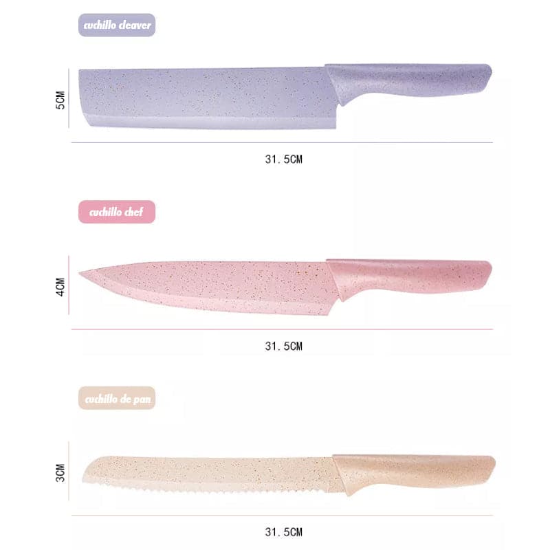 Set 6 Piezas De Cuchillos Acero Inoxidable De Colores