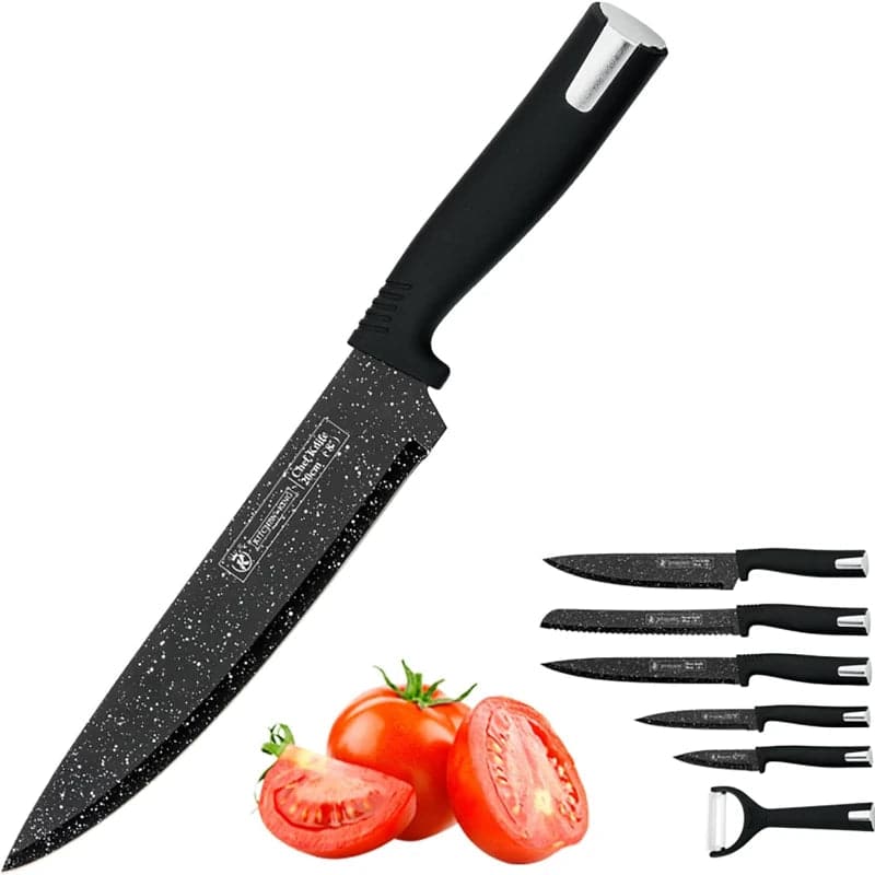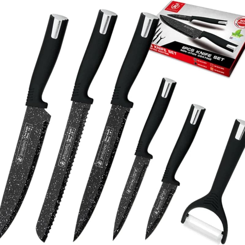 La calidad y durabilidad son la esencia de nuestro set de cuchillos 6 piezas Kitchen King. Cada cuchillo está fabricado con materiales de primera calidad que garantizan un rendimiento excepcional y una larga vida útil. La nitidez de los filos y la resistencia de los mangos hacen que estos cuchillos sean una inversión culinaria inteligente.