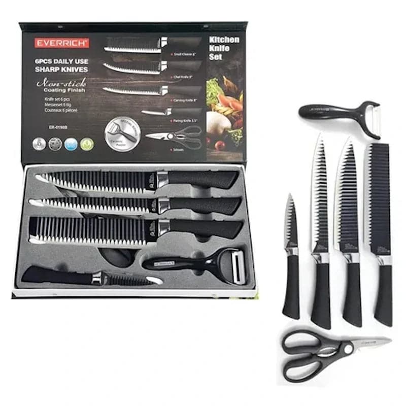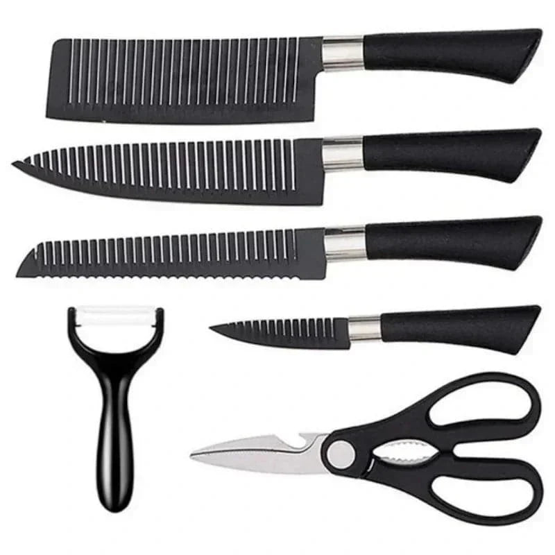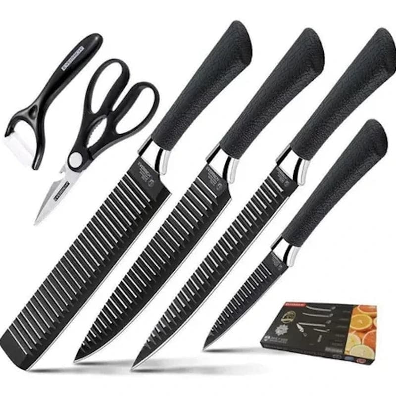 El set de cuchillos no solo es un placer para usar, sino que también es un deleite para los ojos. El diseño elegante y moderno agrega un toque de sofisticación a tu cocina. Además, la ergonomía de los mangos garantiza un agarre cómodo y seguro, lo que hace que cortar, picar y rebanar sea una tarea sin esfuerzo.