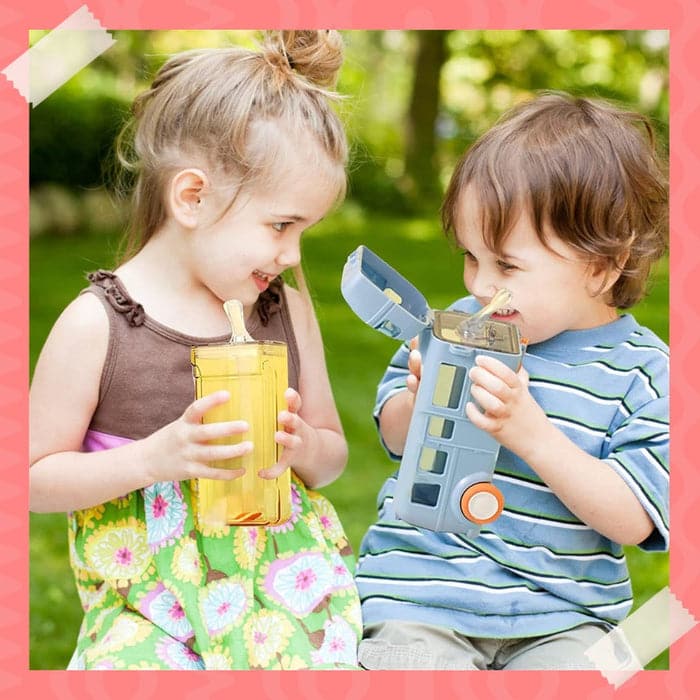 Lindo diseño en forma de autobús, tanto botellas de agua como juguetes, para que los niños disfruten de la diversión de beber agua, es el regalo perfecto para los niños en cumpleaños y días festivos.