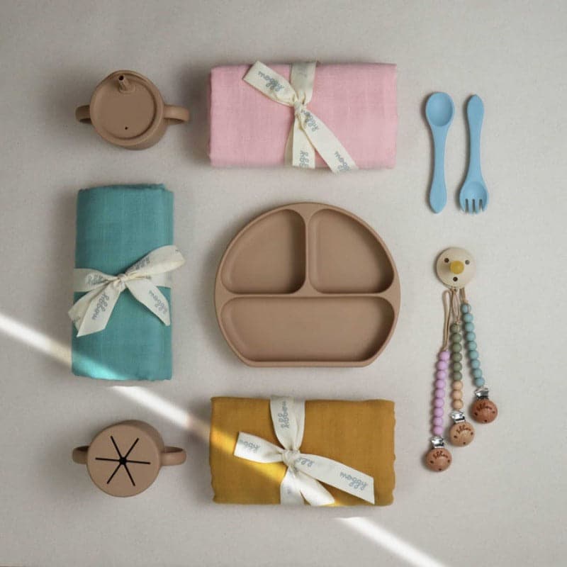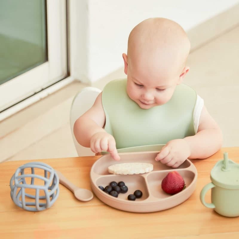 El plato de silicona para bebés viene con una tapa para cubrir su contenido. El vasito para sorber viene con una tapa y una pajilla para que el bebé pueda beber más fácilmente. ¡Enseña a bebés, niños pequeños y niños cómo comer en la mesa del comedor